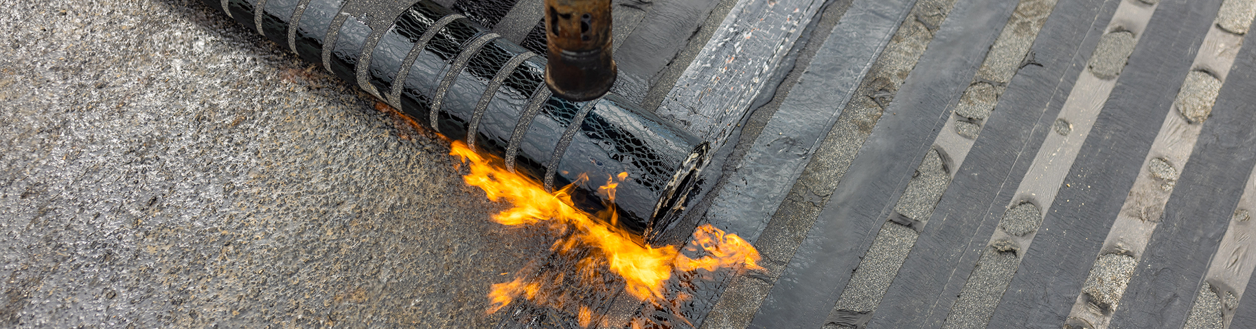 Trabalhos de impermeabilização em terraços com recurso a membranas betuminosas e membranas sintéticas. A intervenção assegurou a proteção eficaz das superfícies contra a infiltração de água e a preservação da estrutura do edifício comercial.